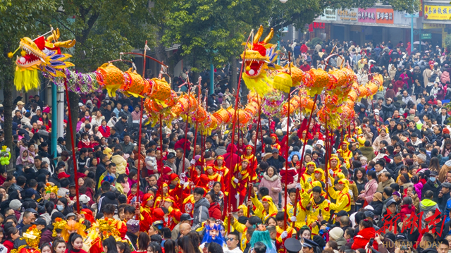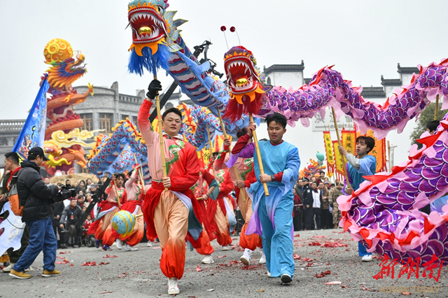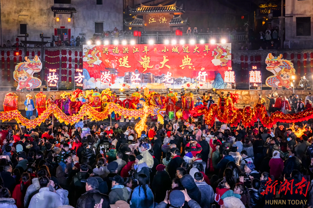南方小年夜,洪商福宴以洪江古商城为背景,寻味舌尖上的乡愁与温情;大年初一,“龙腾古城”大巡游活动,将以传统请龙仪式结合机器人方阵等现代元素,上演一场民俗与科技相融的盛景;初二、初三,数十条龙狮接连踏街巡游,与市民游客共迎新春;大年初五,洪商祈福仪式再现接财神、开市纳吉的传统场景;正月十五,一场传统的元宵喜送龙活动,将“洪福洪江年、小城过大年”活动推向高潮。