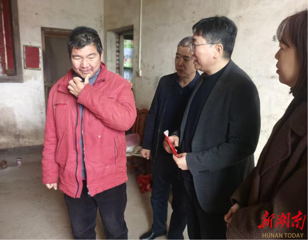 大众卫生报·新湖南客户端2月4日讯(通讯员 邹勇)新春将至,暖意先行。为切实把党和医院的关怀与温暖送到基层困难群众心中,巩固拓展脱贫攻坚成果同乡村振兴有效衔接,2月4日上午,衡阳市第一人民医院党委书记钟杰代表医院党委,深入该院驻村帮扶点——常宁市新河镇河洲村,走访慰问困难党员和群众13户,发放慰问金5200元,并认真听取驻村工作队近一年工作情况汇报,部署下一步帮扶工作。医院党委副书记、副院长冷晓君陪同走访。