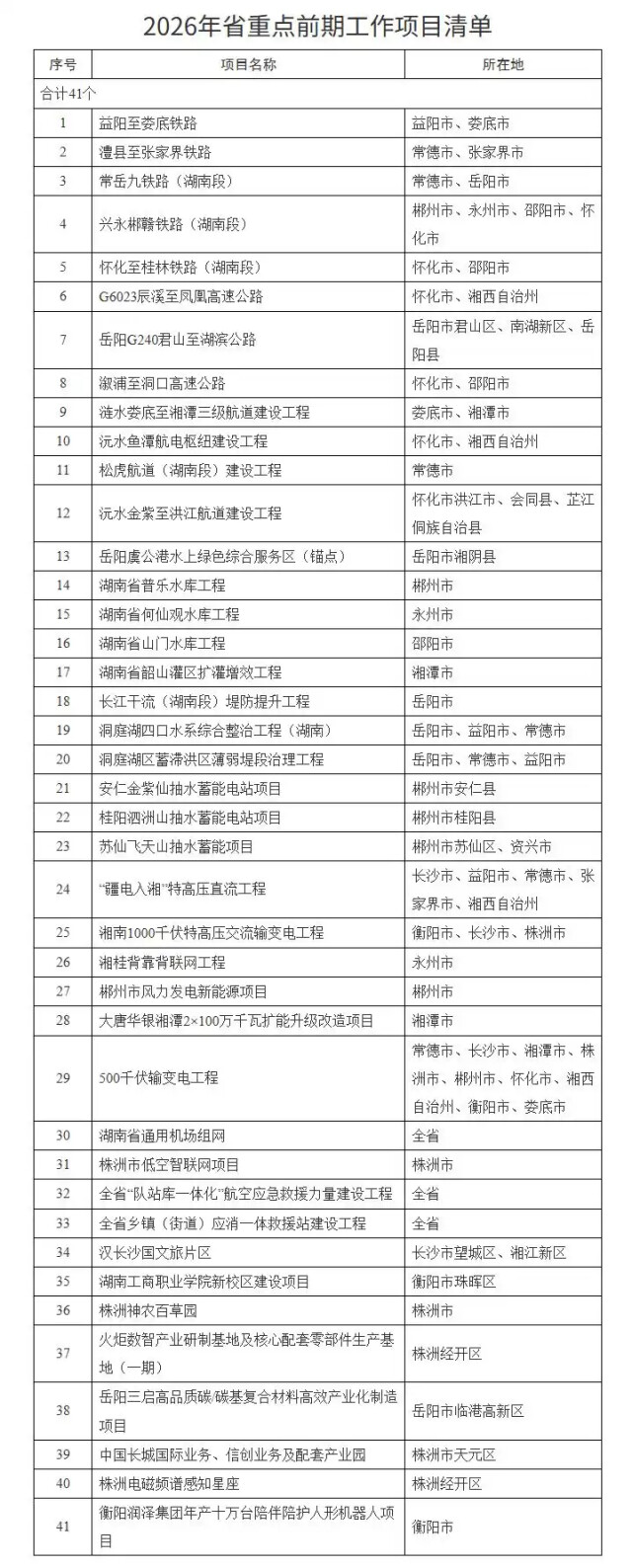 湖南日报2月4日讯(全媒体记者 郑旋)2月3日,省发改委公布2026年省重点建设项目和省重点前期工作项目名单。其中,省重点建设项目389个,省重点前期工作项目41个。