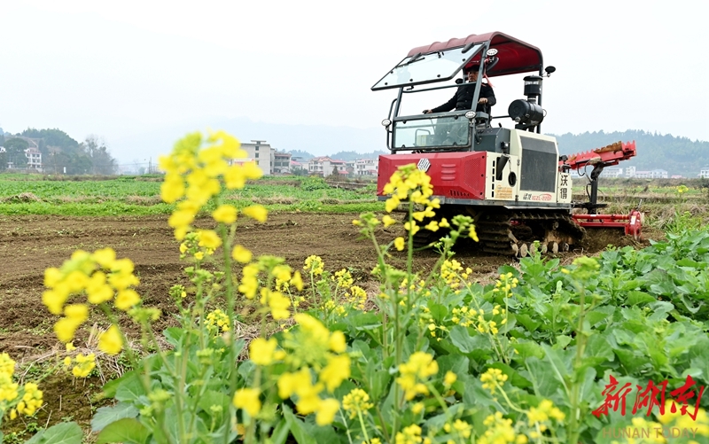 2月4日,洞口县花园镇黄金村,农民驾驶耕田机翻整田地。 立春节气,各地农民及时开展农事,忙碌在希望的田野上。滕治中 摄(湖南图片库)