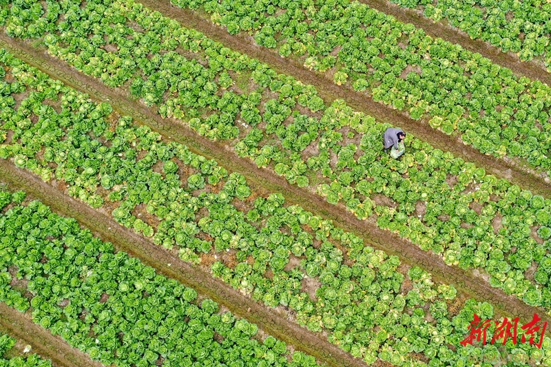 2月4日,新田县中山街道东升村,村民在采收蔬菜。立春节气,各地农民及时开展农事,忙碌在希望的田野上。刘贵雄 摄(湖南图片库)
