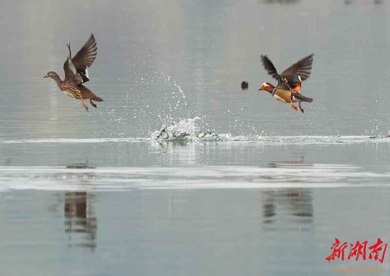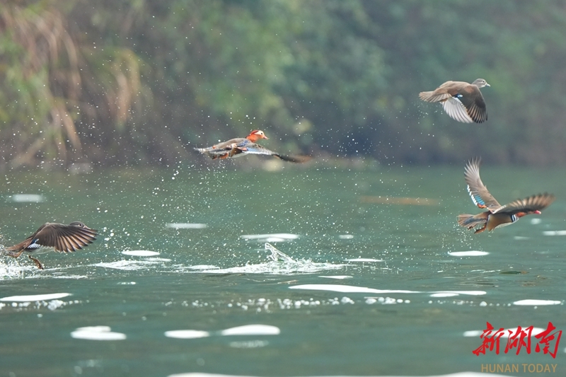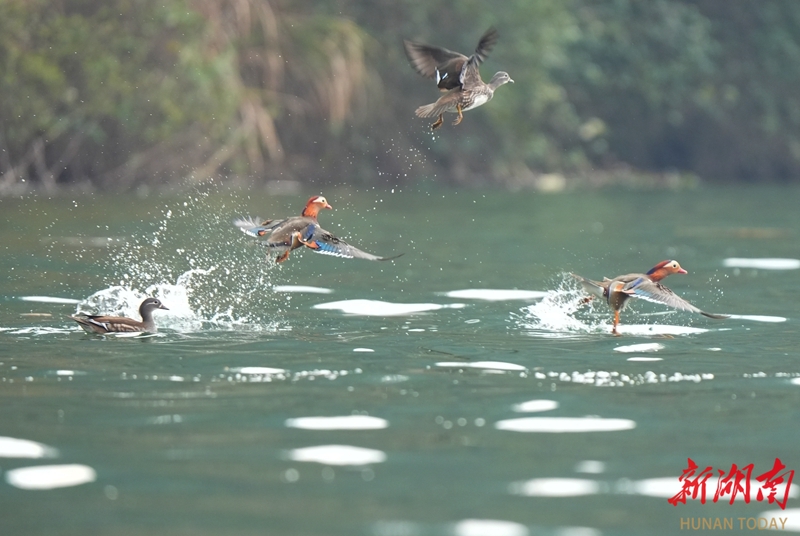 2月4日,立春节气,衡东县杨林镇洣水河,鸳鸯在河面嬉戏游弋,呈现出一幅灵动的春日画卷。曹正平 陈立新 摄影报道(湖南图片库)