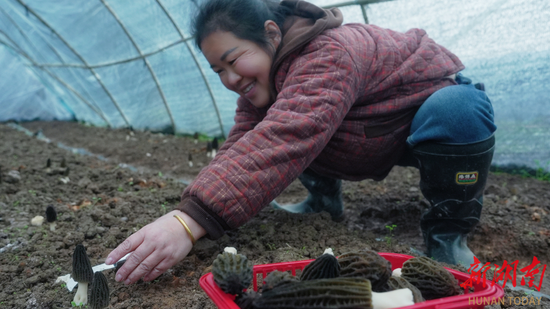 “新春丰收是给村民最好的新年礼物。”辰溪县辰阳镇张家溜村党支部书记张齐浩望着长势喜人的羊肚菌喜笑颜开,“今年我们种植羊肚菌40亩,预计亩产量达500余斤,总产值约70万元。我们流转土地给租金并优先吸纳周边村民就业,让大家在家门口就能挣钱。”