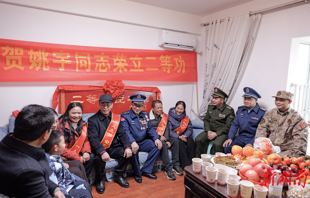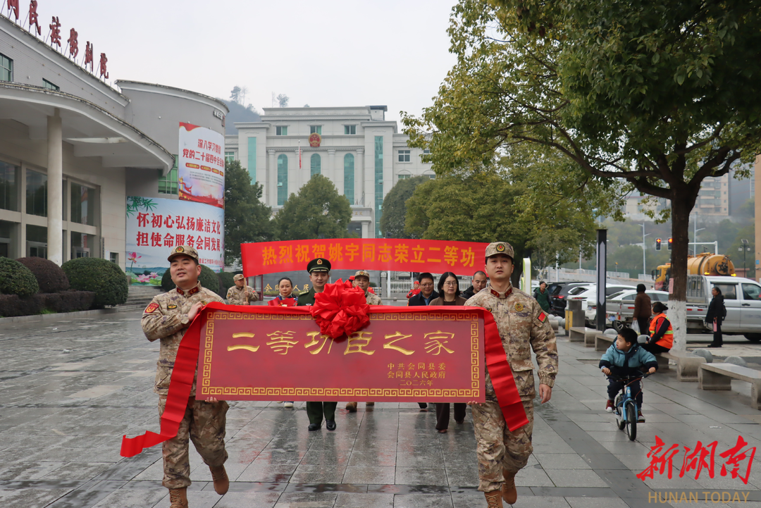湖南日报·新湖南客户端2月5日讯(通讯员 李盼 粟靖萱 王敏)2月4日,会同县人民政府、县人武部、县退役军人事务局组成慰问组,带着“二等功臣之家”牌匾和立功奖励金敲锣打鼓地走进二等功臣姚宇家中,将这份承载着军地关怀的荣誉,送到其家属手中。