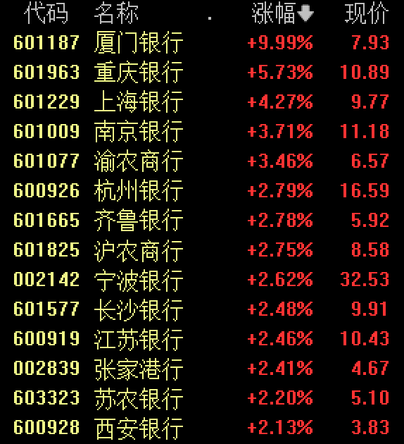 午后银行、券商股拉升,其中厦门银行、华林证券涨停。