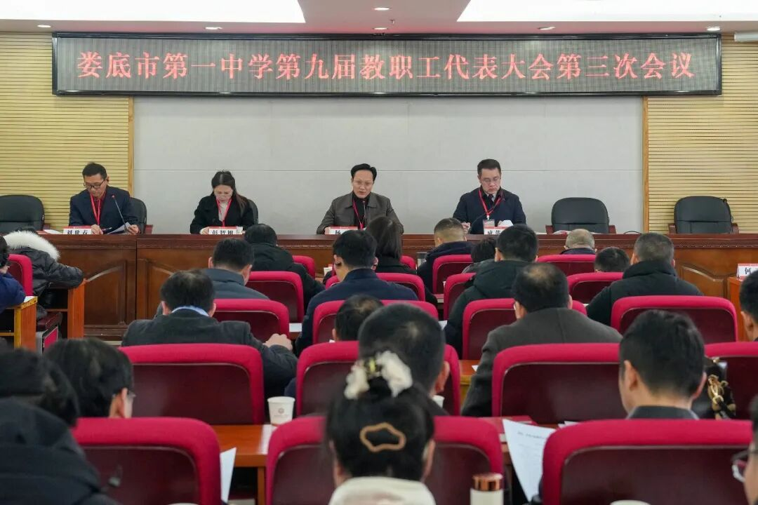 新湖南客户端2月5日讯(通讯员 周松华 李峰)农历岁末,新春将至,年味渐浓。为凝聚全校教职工智慧力量,共绘学校高质量发展蓝图,2月3日,娄底一中第九届教职工代表大会第三次会议召开,全体教职工代表齐聚正心楼,以高度的责任感和使命感,共商学校发展大计、共话教育美好未来。