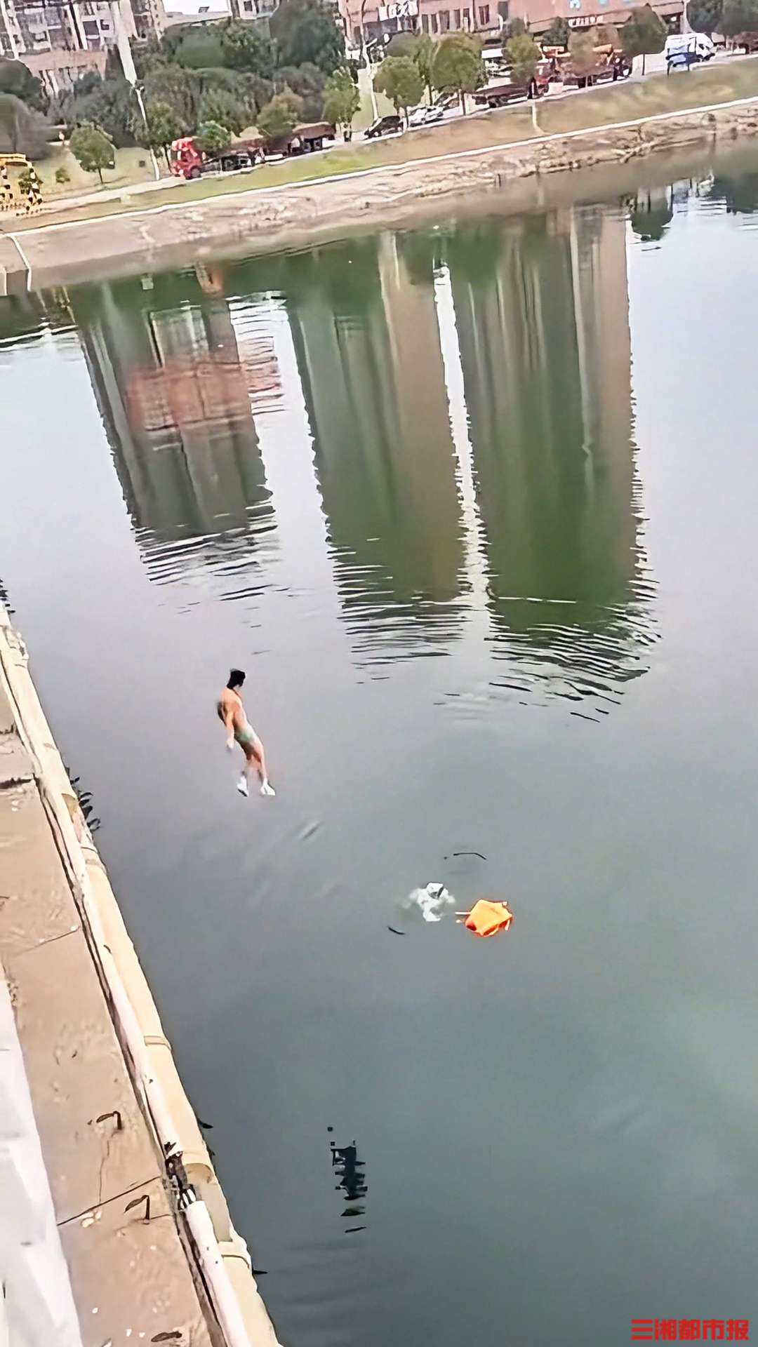 三湘都市报·新湖南客户端2月5日讯(文/视频 全媒体见习记者 刘文)“当时没想那么多,看到她快沉下去了,人命关天,只能往下跳。”2月3日,湖南娄底市二大桥旁,一名女子不慎落水。危急时刻,一名过路小伙脱掉睡衣,毫不犹豫地从18米高的桥面跳下,迅速游至女子身边将其托举上岸。
