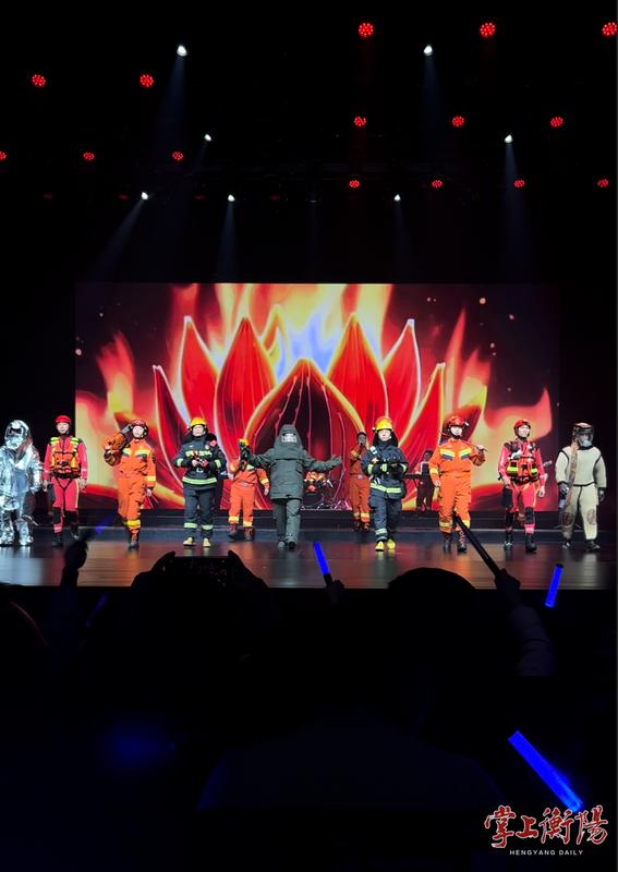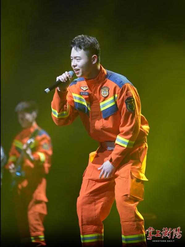 作为这场演出的主力,蓝雁乐队的成员都是衡阳一线消防救援人员,他们卸下抢险救援的“铠甲”,拿起乐器、站上舞台,既展现自我风采,更传递消防安全知识,让“预防为先”的理念随旋律浸润人心。演出现场,《逆战》的激昂旋律搭配模拟火焰特效,点燃全场的同时,传递出“火场如战场”的无畏信念;改编版《武家坡》中,消防火调员与湘剧演员跨界合作,唱出消防员对家人的愧疚与牵挂,让观众读懂“逆行者”的铁骨与柔情。