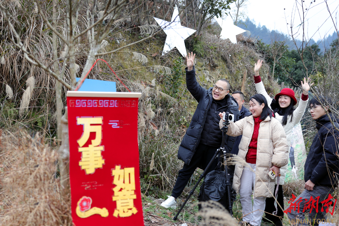 2月4日,摄影师在为村民拍摄全家福。2月3日至4日,湖南省摄影家协会在凤凰县水打田乡东子山村开展“强基工程”新春特别行动。青年摄影师为村民免费拍摄全家福,用影像记录团圆时刻,助力乡村文化振兴。 罗新国 摄(湖南图片库)