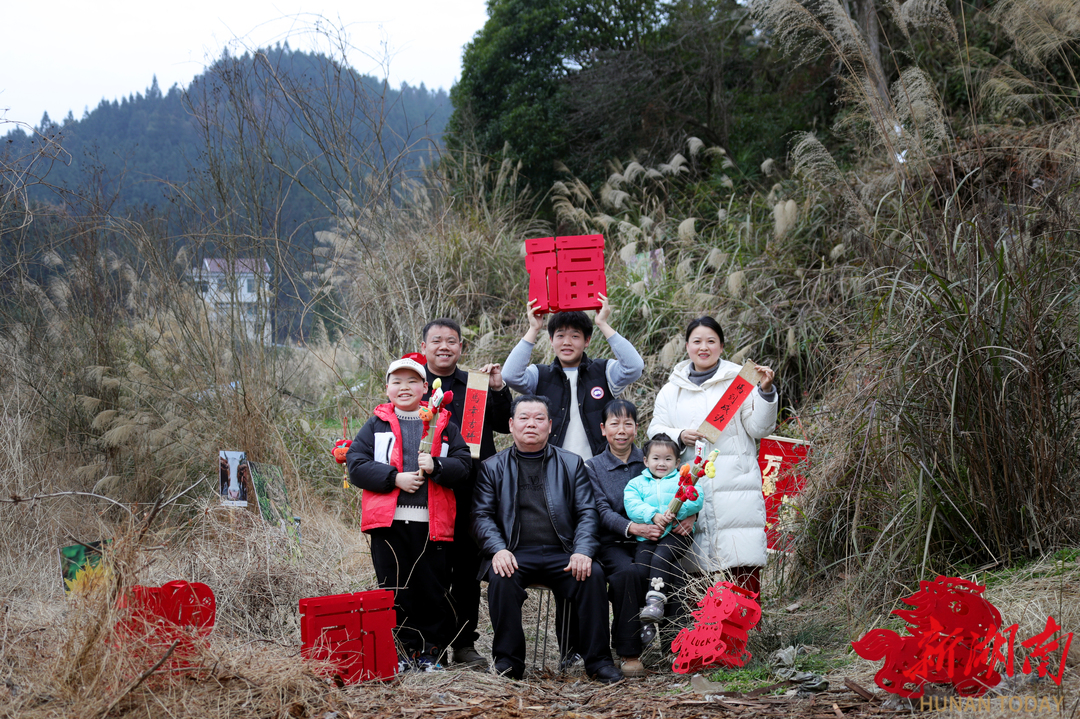 2月3日,摄影师在为村民拍摄全家福。2月3日至4日,湖南省摄影家协会在凤凰县水打田乡东子山村开展“强基工程”新春特别行动。青年摄影师为村民免费拍摄全家福,用影像记录团圆时刻,助力乡村文化振兴。 罗新国 摄(湖南图片库)