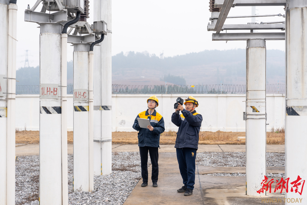 2月5日,中国铁路广州局集团有限公司衡阳供电段邵东高铁供电车间工作人员在怀衡线隆回变电所开展变电设备测温巡视作业。春运启动以来,该段工作人员加密巡检频次,通过红外测温及时发现处置隐患,确保铁路牵引供电系统持续稳定运行。周鑫 李建明 摄影报道(湖南图片库)