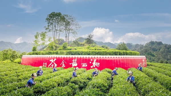 漫步吉首市马颈坳镇隘口村茶园,茶香四溢,满眼绿意。梁永鸿 摄