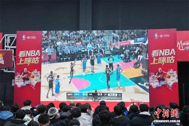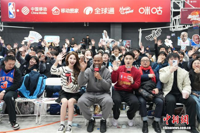 Stephon Marbury watches an NBA game with fans. (Photo/Yang Huafeng, Chinanews)