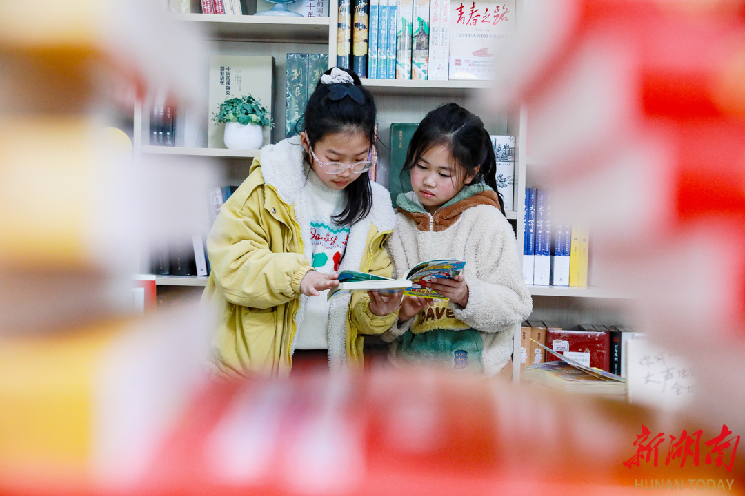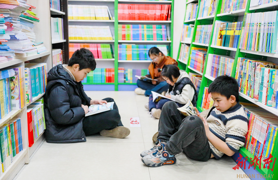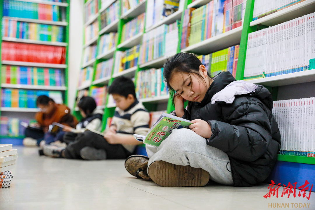 2月5日,新田县新华书店里,小朋友在阅读书籍。寒假期间,湖南省新田县众多小朋友走进新华书店、图书馆、城市书房,阅读图书,品味书香,乐享假期。刘贵雄/摄影报道