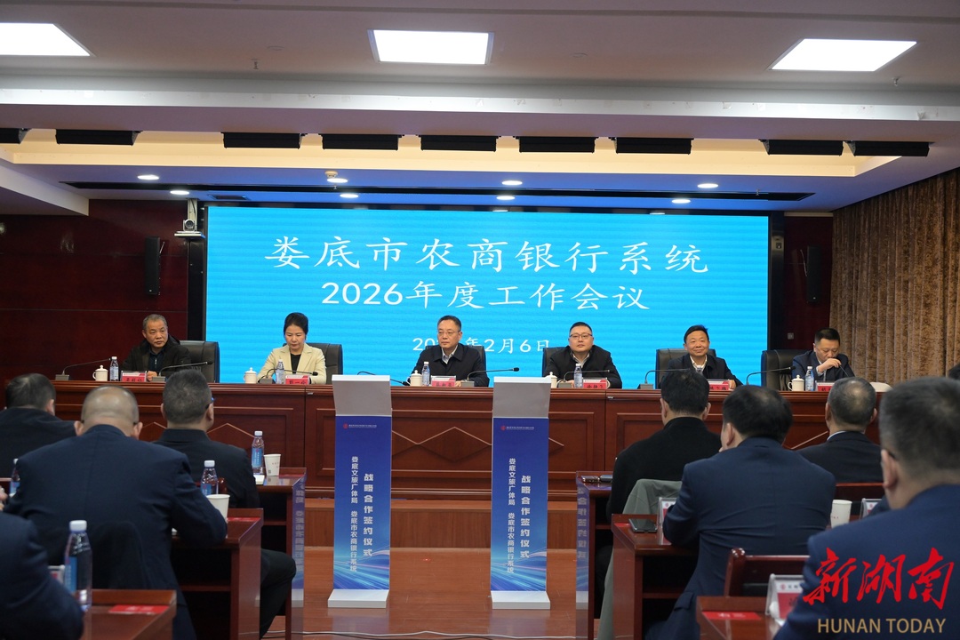 湖南日报·新湖南客户端2月6日讯(记者 曾玉玺 通讯员 卢清)2月6日,娄底市农商银行系统2026年度工作会议举行。会上,省农信联社娄底办事处与娄底市文旅广体局签约,双方将聚焦多项重点领域,推动金融资源与文旅新业态深度融合,助力打造湘中文旅消费新热点。娄底市委常委、副市长蔡新亚讲话并见证签约。
