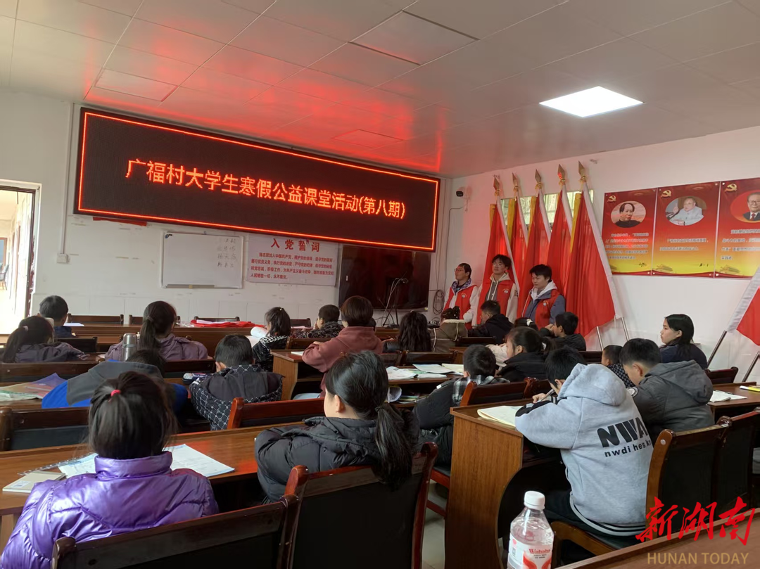 湖南日报·新湖南客户端2月6日讯(通讯员 周梦凌)冬日,沅陵县凉水井镇广福村党群服务中心的会议室里传来琅琅书声。近日,第八期“梦想邮递员”广福村大学生寒假公益课堂如期开课,身穿红马甲的志愿者们穿梭其间,为40多名留守儿童答疑解惑,而三级残疾的曹仕清拄着拐杖忙碌的身影,成为课堂最动人的风景。