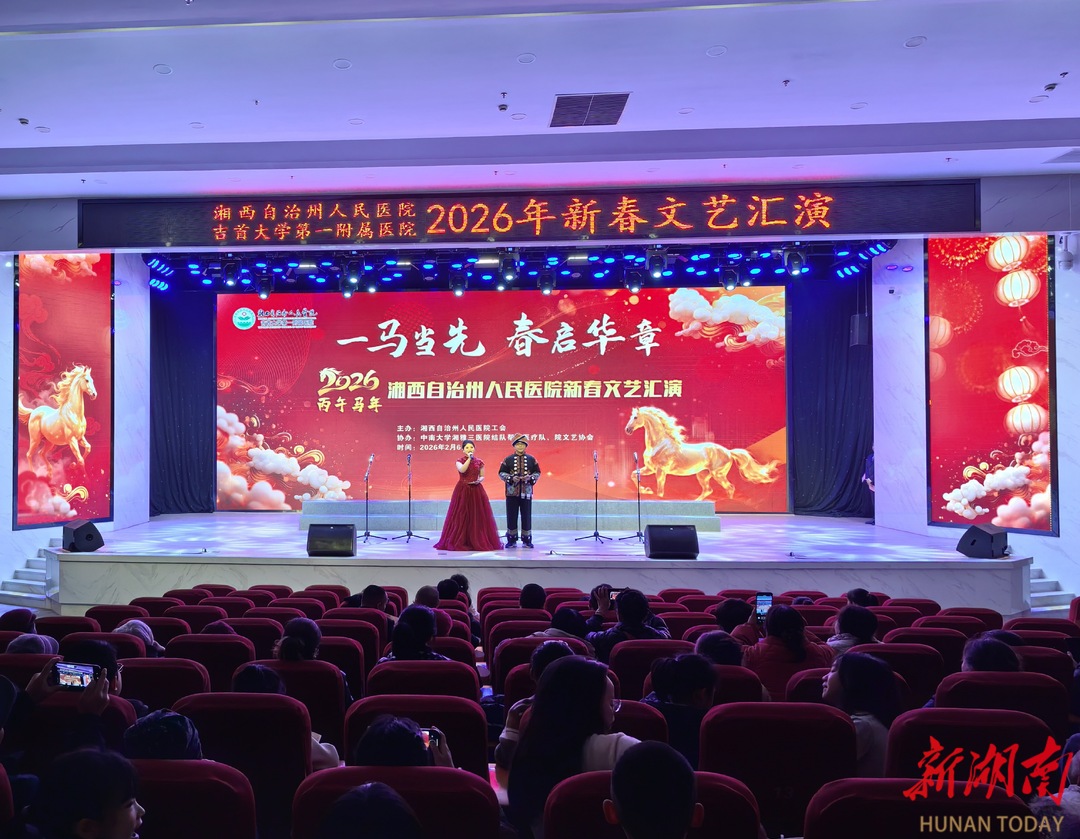 湖南日报·新湖南客户端2月6日讯(实习记者 李慧争 欧阳颖)2月6日晚,湘西土家族苗族自治州人民医院“一马当先·春启华章”2026年新春文艺汇演,在该院职工活动中心一楼报告厅启幕。