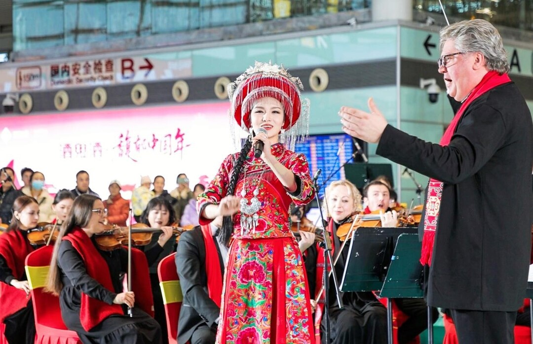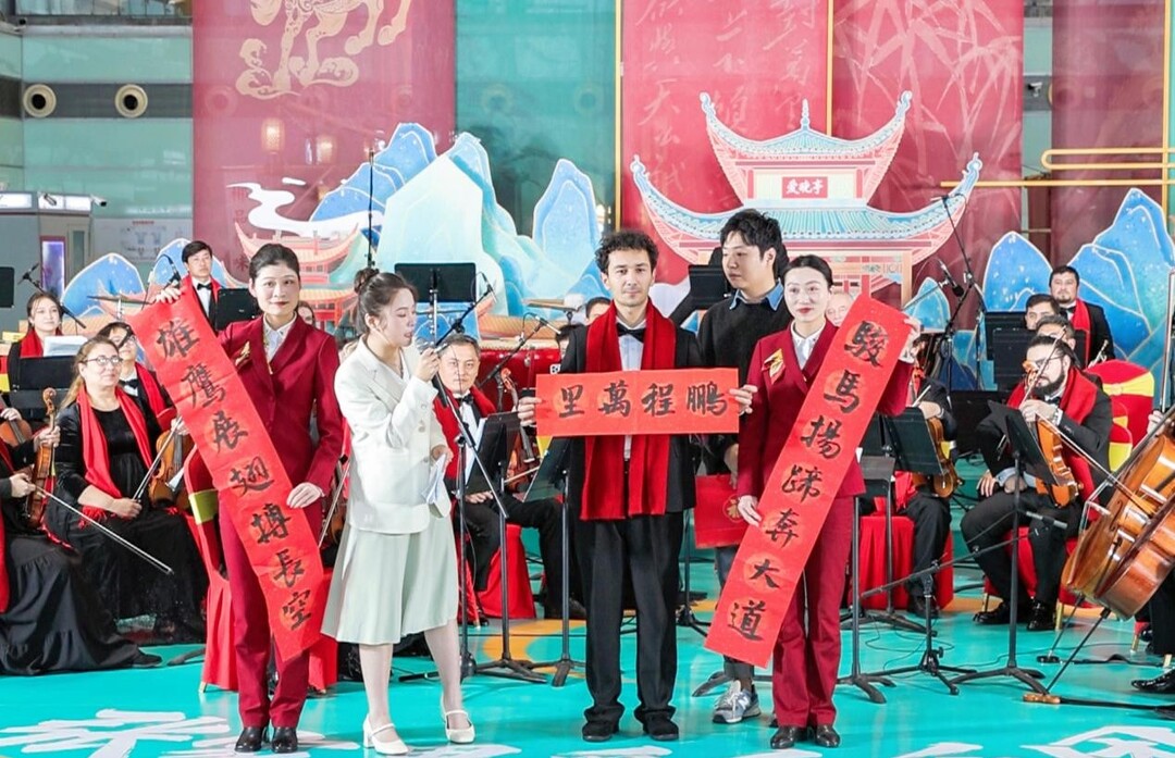 乐团中来自各国的乐手演绎了多首经典曲目,《春节序曲》的热烈旋律瞬间点燃现场团圆喜庆氛围,《浏阳河》的婉转曲调传递湖湘人文风情。来自上海的旅客王女士很惊喜:“没想到在机场就能看到如此高水准的交响演出,旅途的疲惫瞬间化解,这是一次难忘的春运体验。”
