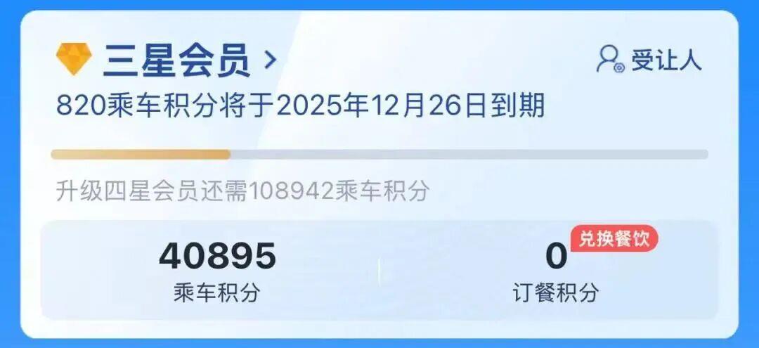 乘车积分在会员本人实际乘车到站后5日内自动进入会员本人账户。