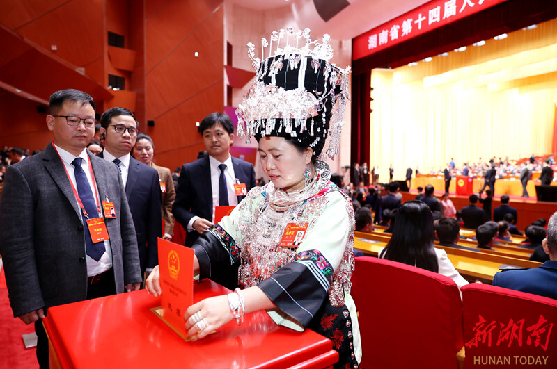 2月7日上午,湖南省第十四届人民代表大会第四次会议在省人民会堂闭幕,代表们热烈鼓掌。