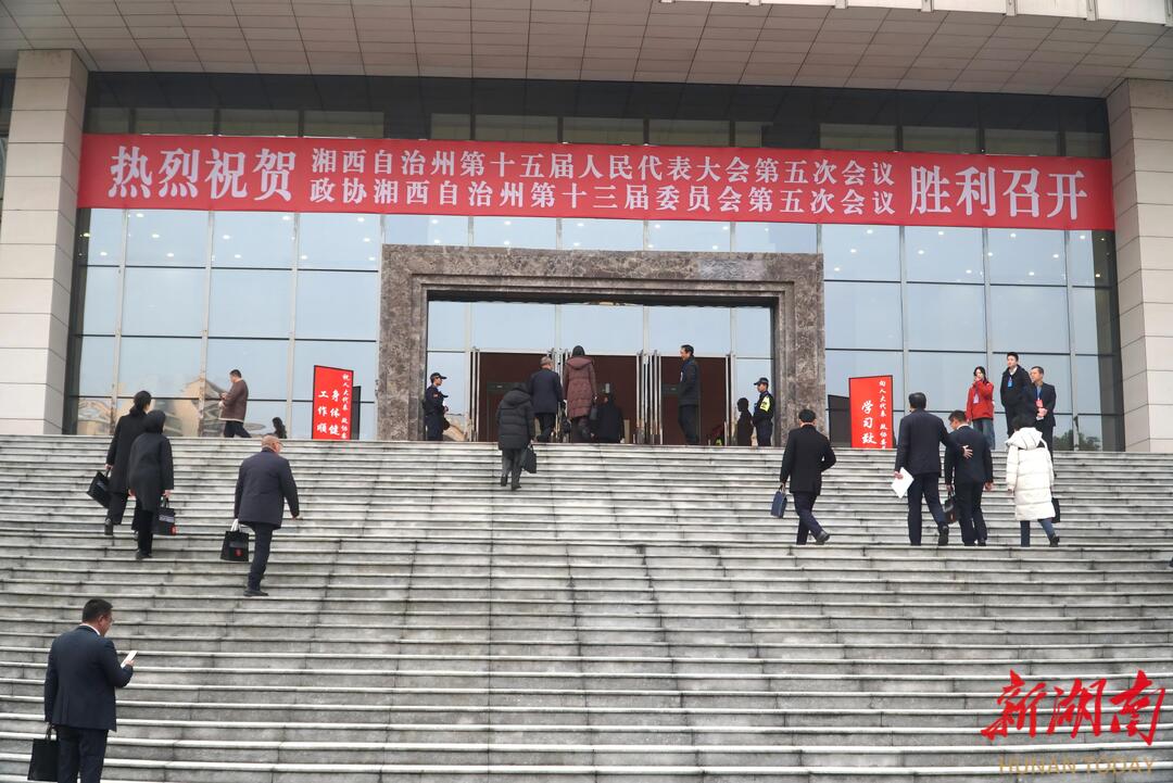 湖南日报·新湖南客户端2月8日讯(实习记者 余琮悦 李慧争 欧阳颖)今天,中国人民政治协商会议湘西土家族苗族自治州第十三届委员会第五次会议,在武陵山大剧院开幕,政协委员陆续步入会场。