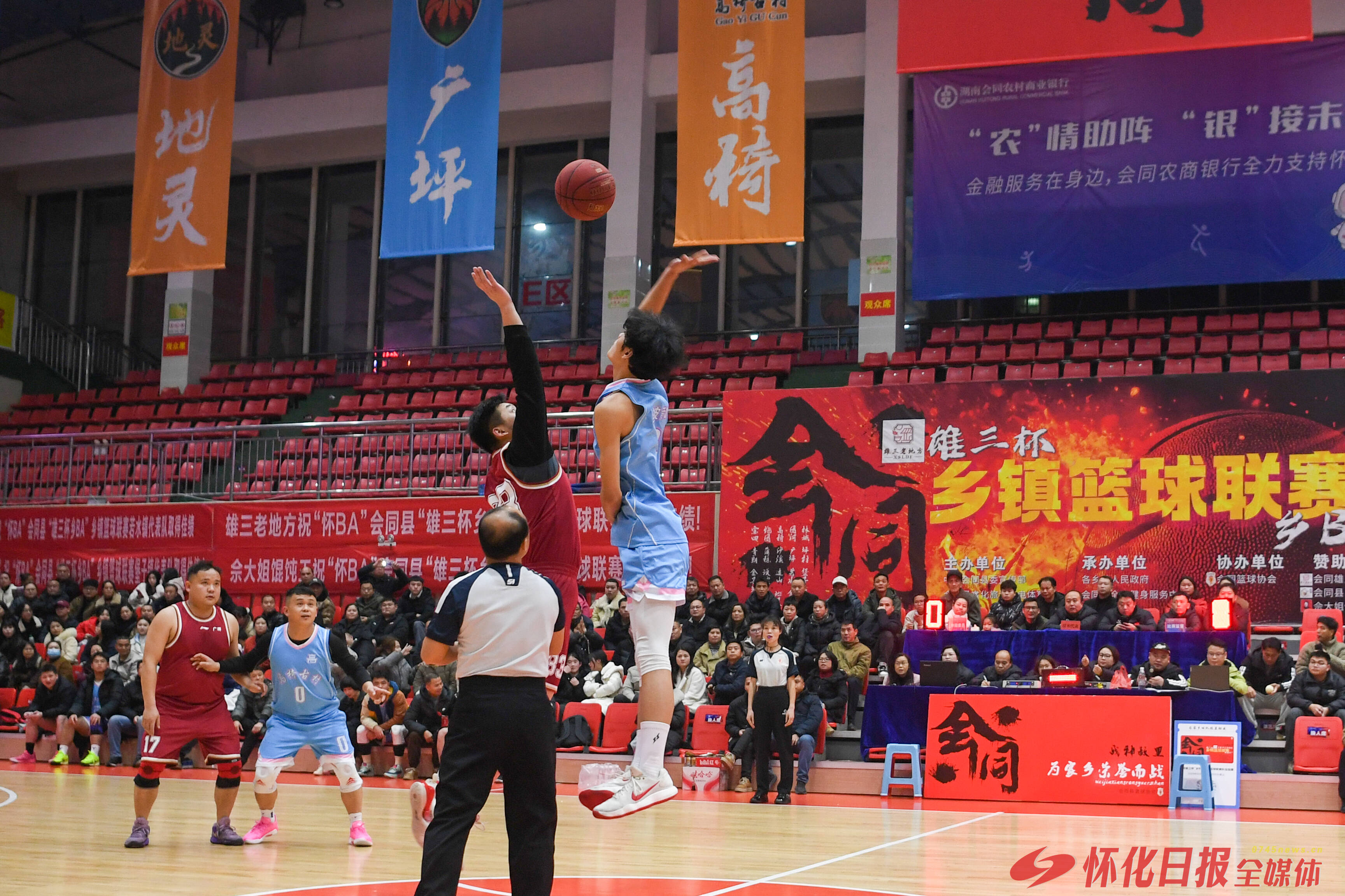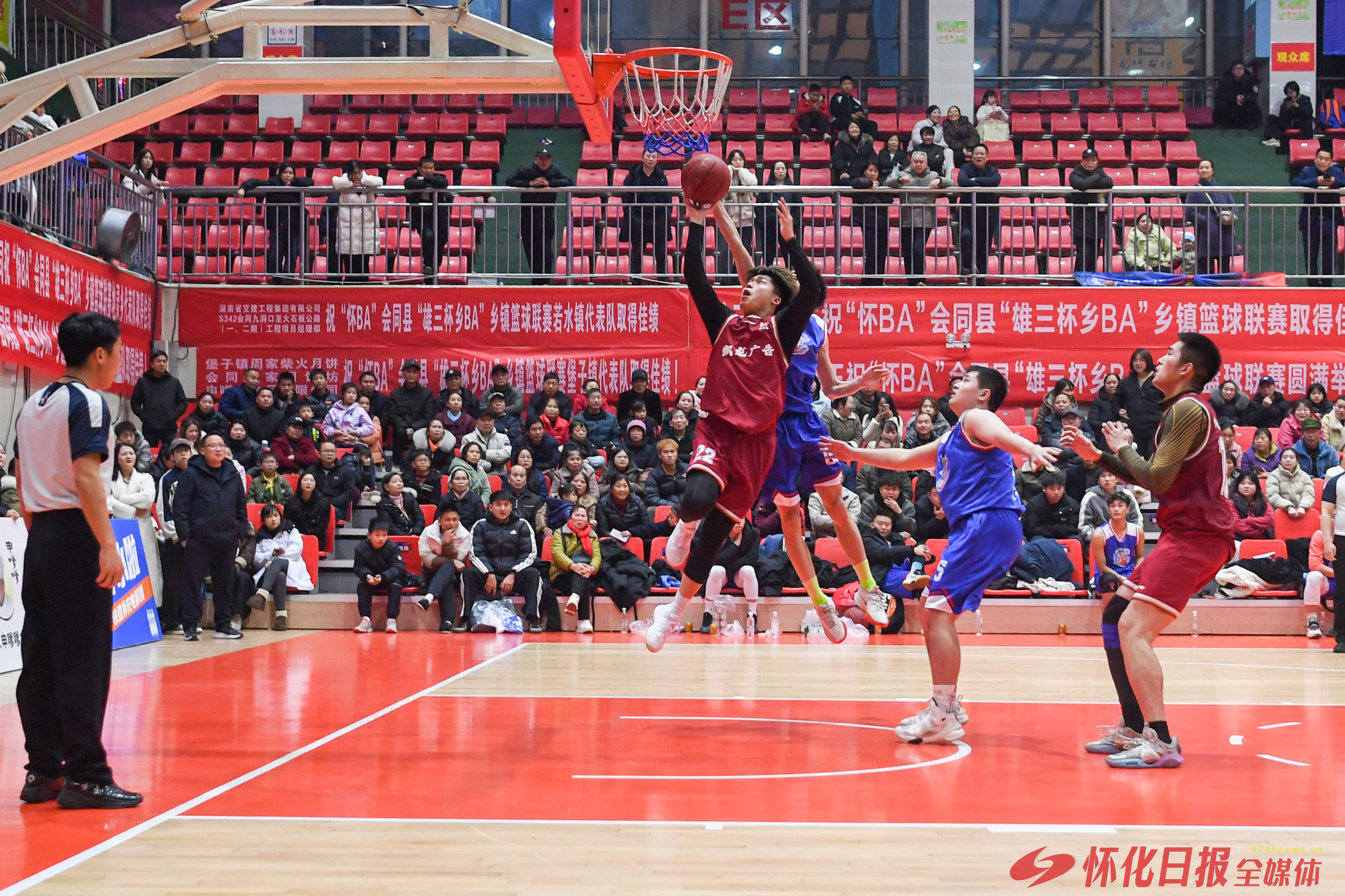 2月5日晚,会同县体育馆室内篮球场,运动员们正在进行比赛。近期,该县举行乡镇篮球赛,全县18个乡镇组队参加,将在春节期间给市民们带来一场篮球盛宴。(怀化日报全媒记者 杨智伟 摄)