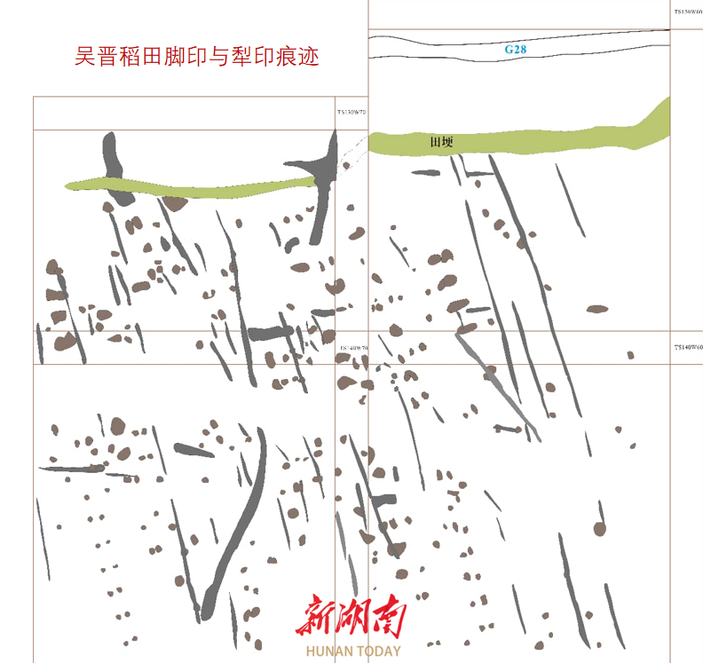 还有一个让人更为亲切的发现是:1600多年前吴晋时期的稻田里,发现了很多人类与牛的脚印,以及犁印痕迹。