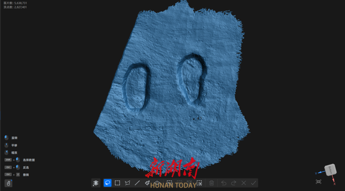人类脚印长28厘米到32厘米不等。李意愿解释道:“并非当时的李家岗人的脚异常地大,而是在稻田中行走,脚一定会前后滑动,使得脚印长了不少。”成串的纵向牛脚印则让人脑海中浮现出更为生动的画面:牛在稻田中行走,努力犁田。