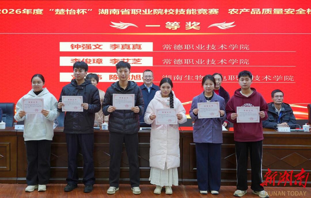 2月7日,2026年度“楚怡杯”湖南省职业院校技能竞赛(高职组)药品生产与农产品质量安全检测赛项在常德职业技术学院闭幕。常职学子们在两大赛项中揽获4枚金牌,用实力彰显了办学特色与育人成效。