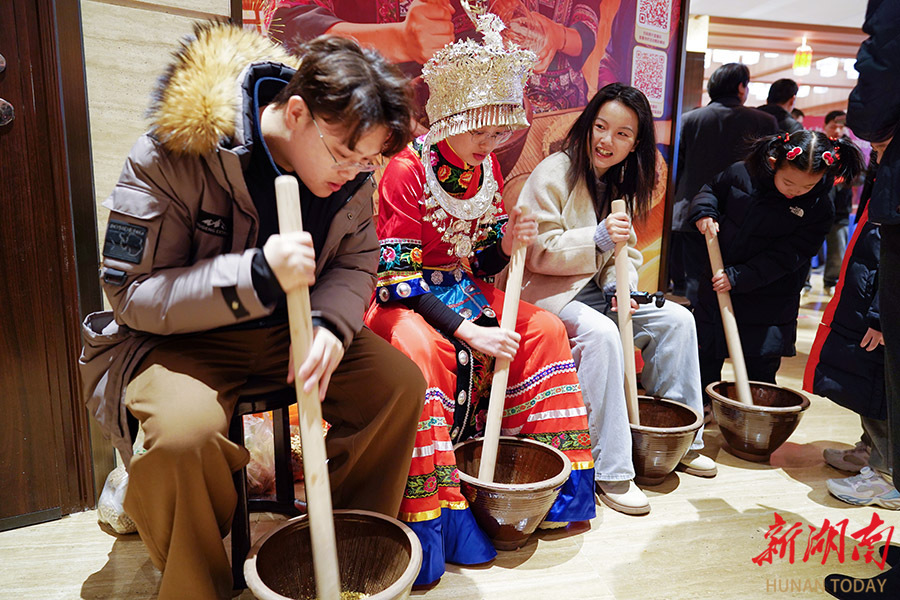 2月8日,消费者在体验制作擂茶。当天,第二届“湘满京城,香辣天下”2026北京湘品湘菜年货节开幕。活动汇聚湖南多地特色农产品及湘菜美食,益阳、衡阳、娄底、常德的推荐官登台推介。本次年货节将持续至2月10日。 湖南日报全媒体记者 徐行 摄