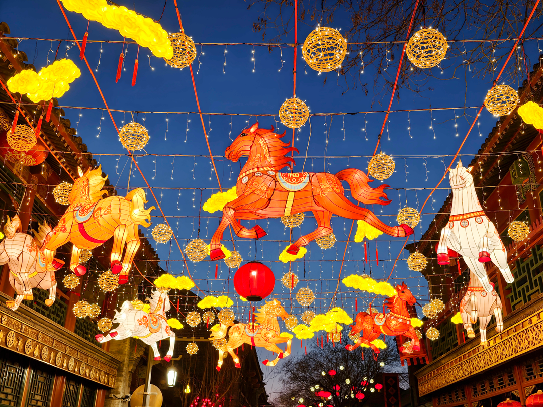 2月8日18时整,北京琉璃厂东街西口灯光亮起。金鬃飞扬,蹄踏祥云,满街都是“马到成功”的好意头。2026,就在这流光溢彩里,祝我们一马当先,万事顺遂!
