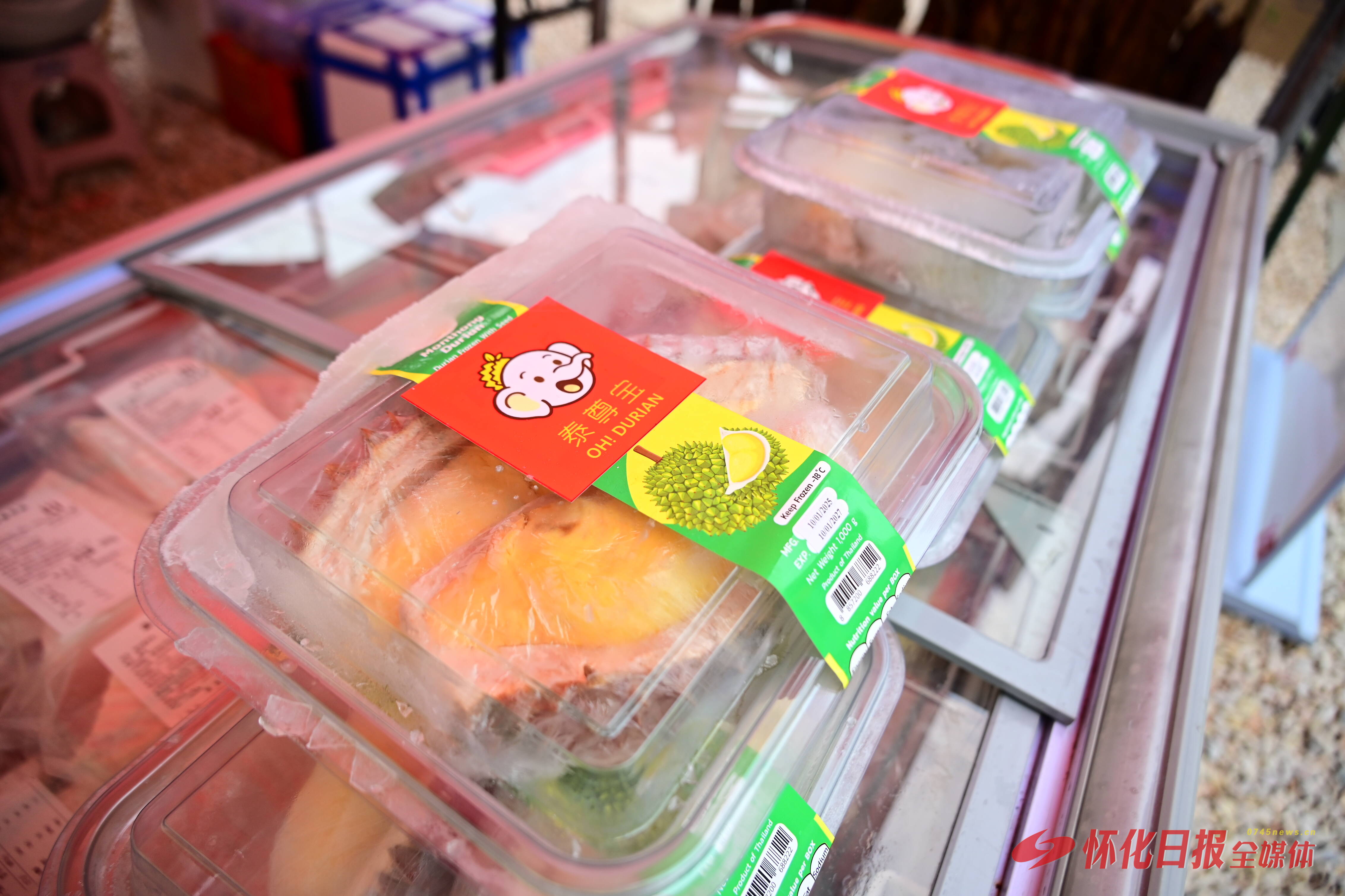 (来自泰国的冰冻榴莲肉,丰富了我市节前消费市场。)