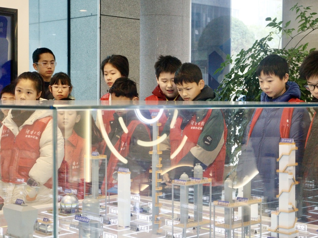 随着企业文化展厅的大门缓缓推开,小记者们的目光瞬间被展厅沙盘上栩栩如生的盐业生产线牢牢吸引,脚步也不由自主地放慢。讲解老师顺势抓住大家的注意力,她循着时间的脉络,将湖南盐业集团的发展故事娓娓道来:从2002年集团组建、扎根湖湘大地,到2018年成功上市,成为“中国盐改第一股”,再到2022年跨界突围,进军新能源产业,每一个关键节点都凝聚着企业的坚守与创新。小记者们听得全神贯注,不时微微点头,忍不住竖起大拇指为企业的快速发展点赞,认真记下这家国企从传统盐业向现代化集团转型的“蝶变”传奇。