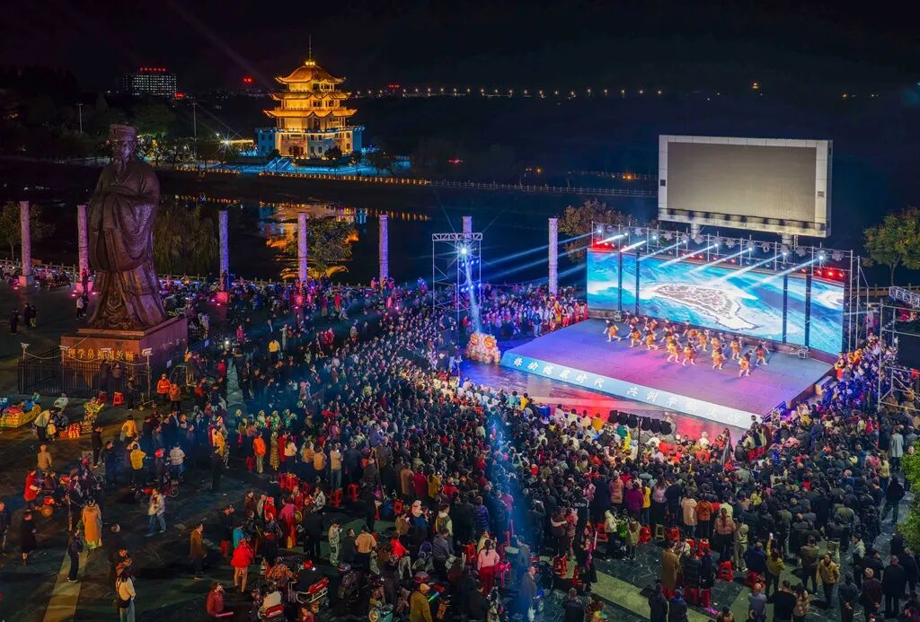 我的镜头记下蚣坝镇的汗水怎样滴进混凝土,周敦颐广场的轮滑鞋怎样划过夏夜。博物馆里,孩子们仰头看文物的眼睛亮着光;夜空中,无人机为这座古城写下“千年文脉”。消防员托起体验的孩子那一刻,我看见勇气在一托一举间悄然传递。