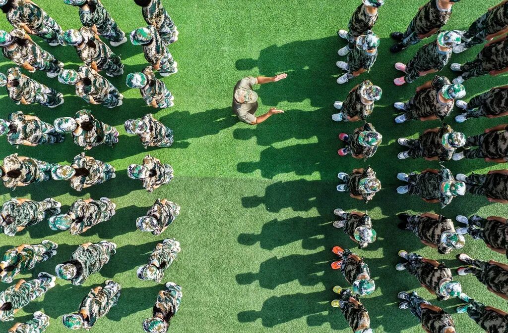 2025年8月17日,道县道州玉潭(东阳)学校,高一新生参加军训,锤炼意志品质。
