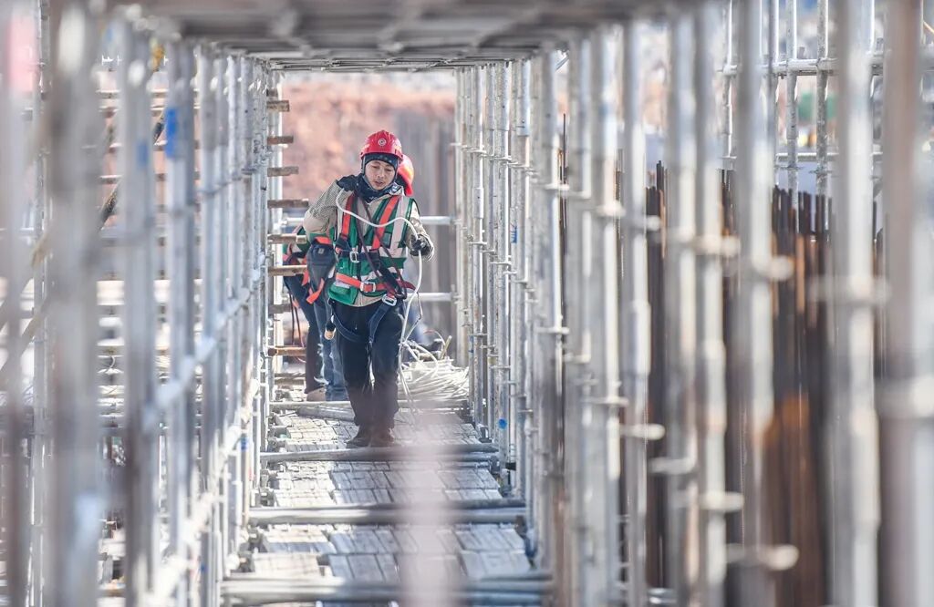 2025年2月9日,道县蚣坝镇,湖南紫金锂多金属新材料有限公司年产6万吨碳酸锂项目施工现场,建设者正有序作业。