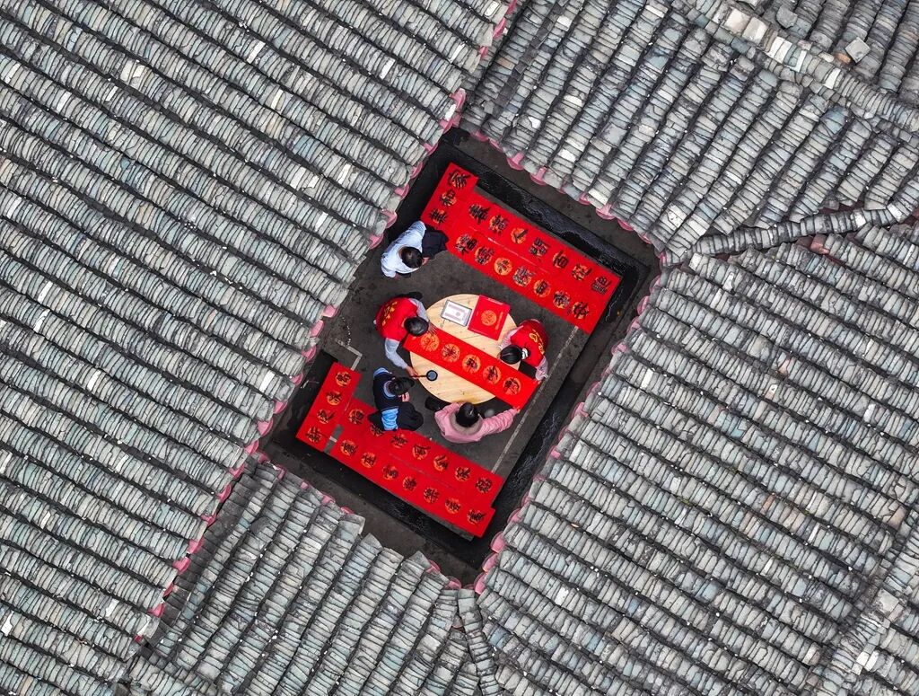 墨迹未干的红纸上,“福”字还湿润着,田垄间的秧盘已列队成行;潇水河上,我听见龙舟的鼓声正追逐着春联的墨香。