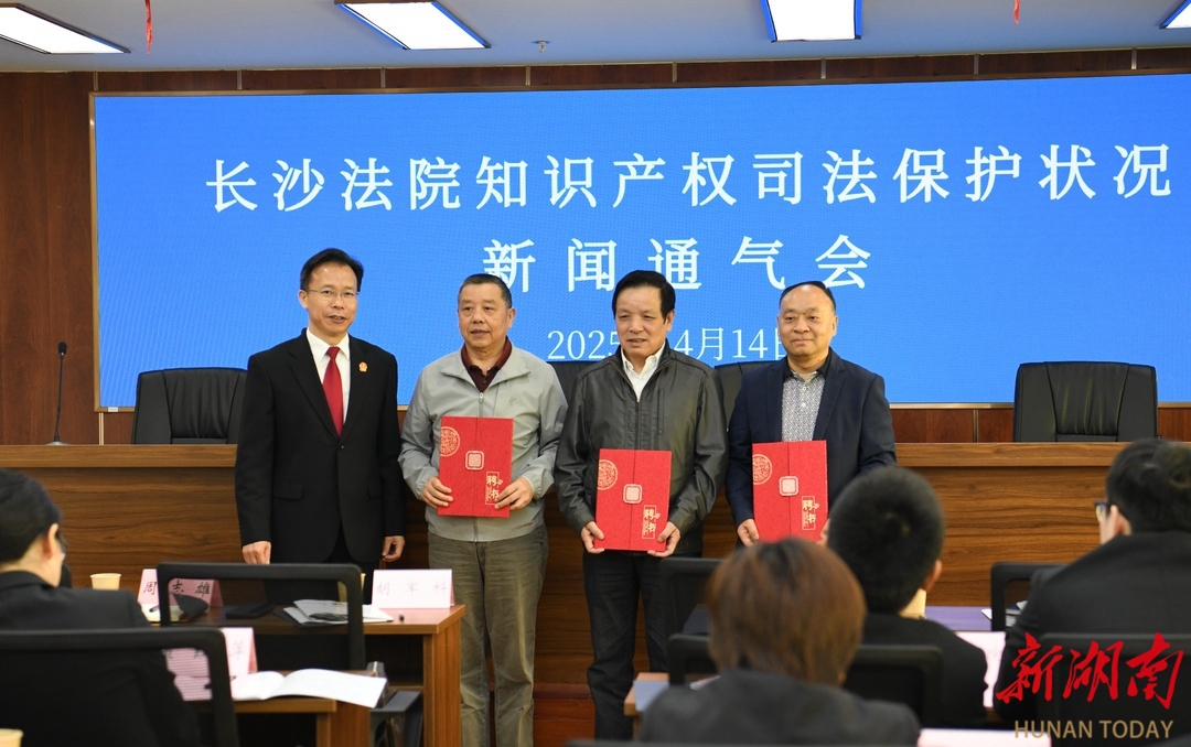 2025年4月14日,长沙市中级人民法院发布全国首份《加强工程机械知识产权保护十二条司法措施》,现场向三位专家发放聘书。通讯员 摄