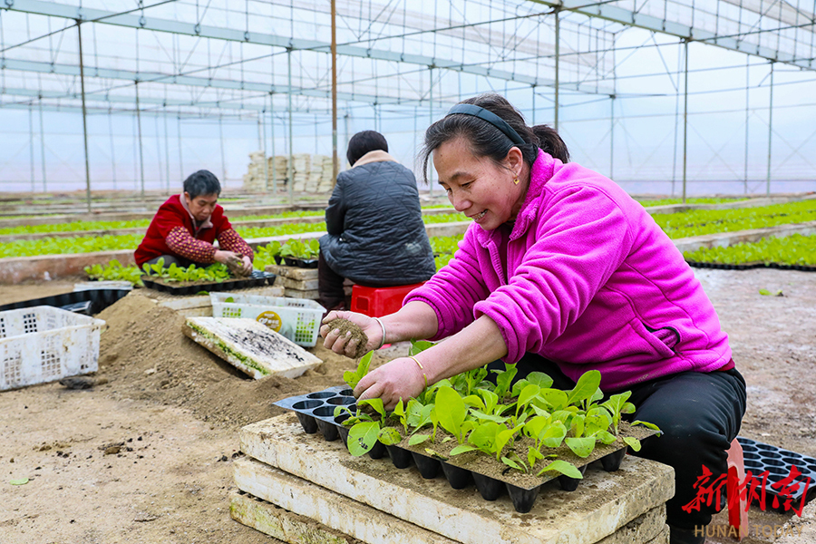 2月9日,新田县三井镇育苗基地内,村民在移栽秧苗。立春过后,当地农民抢抓农时,积极开展各项农事活动,田间地头一派繁忙景象。 刘贵雄 摄(湖南图片库)