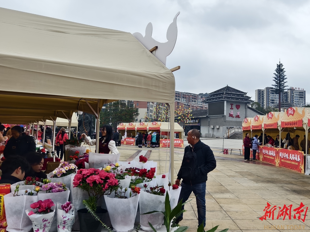 最热闹的莫过于侗品云端直播区和新春节庆年货区。主播们热情推介着“年货+旅游”组合套餐,而市民们则在红火热闹的年货摊位前挑选着春联、灯笼和鲜花。
