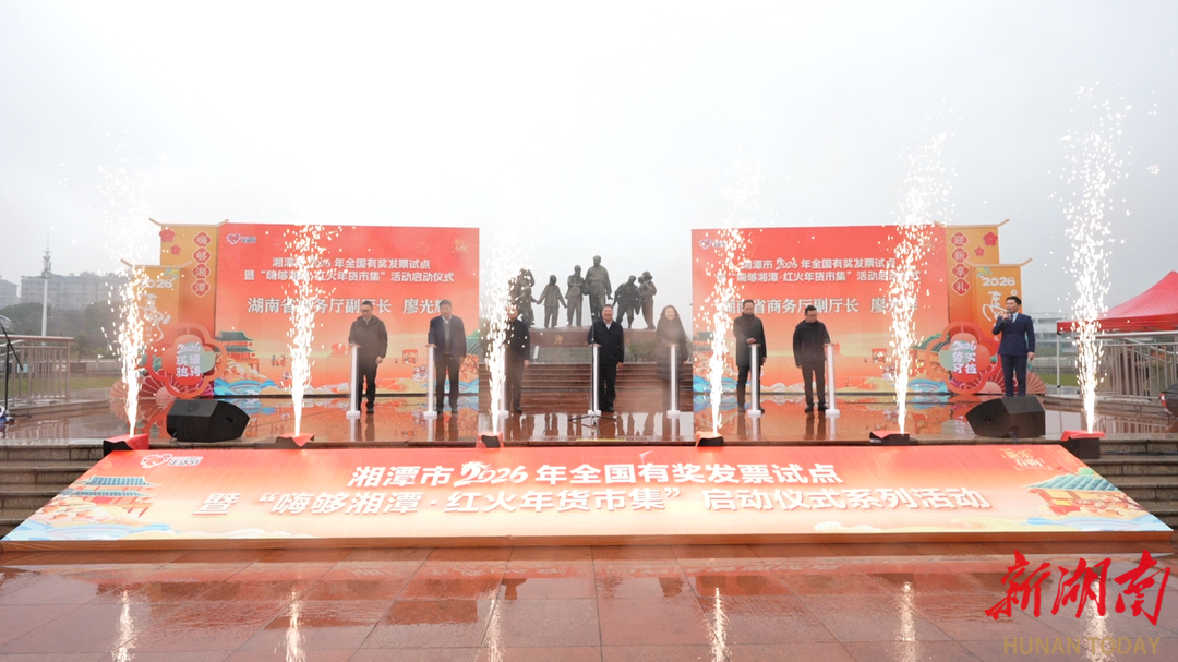 湘潭成功获批全国有奖发票试点城市,中央财政安排约1.5亿元奖补资金用于兑付奖金,此次湘潭率先在试点城市中启动实施。2月10日,湘潭市2026年全国有奖发票试点暨“嗨够湘潭・红火年货市集”活动在岳塘区东方红广场正式启动。