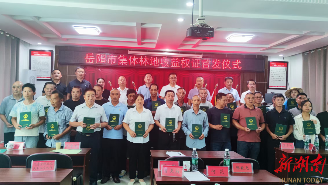 岳阳市首批集体林地收益权证在平江县加义镇思源村发放