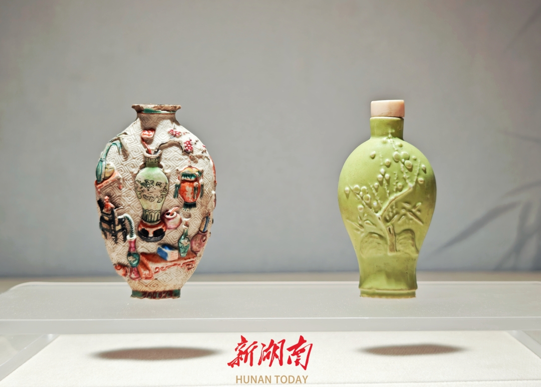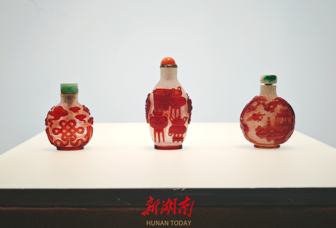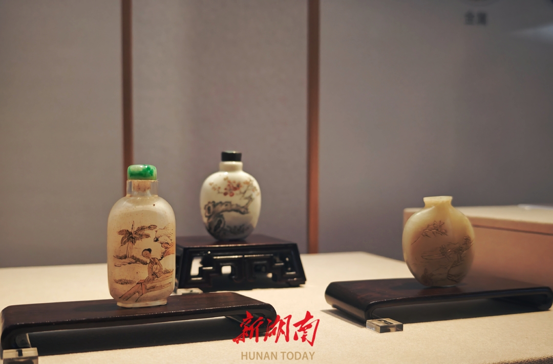翡翠、玛瑙、水晶、琥珀、陶瓷、金、银、铜等制成,集绘画、书法、雕刻、镶嵌等工艺于一体,掌中珍品鼻烟壶十分精美。2月10日,“玲珑百态巧作成——鼻烟壶艺术精品展”在长沙博物馆开幕,200余件清代至民国时期的鼻烟壶珍品美丽亮相。