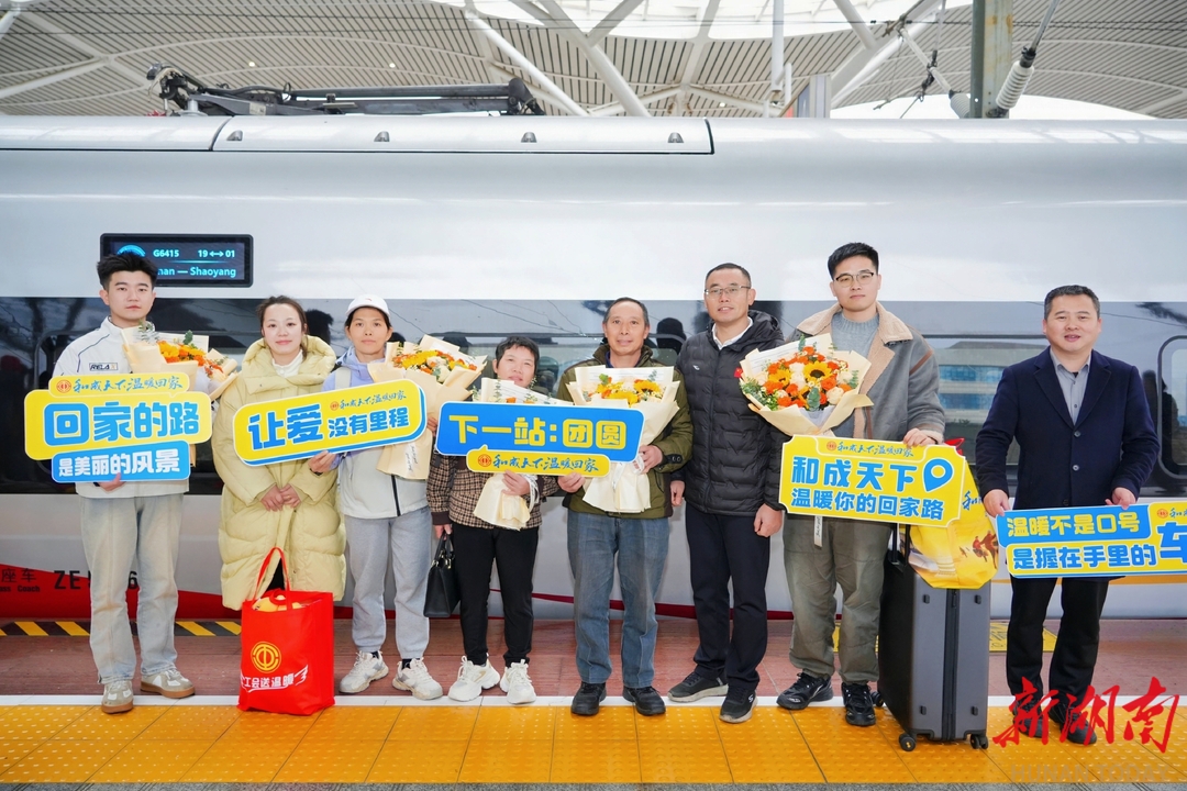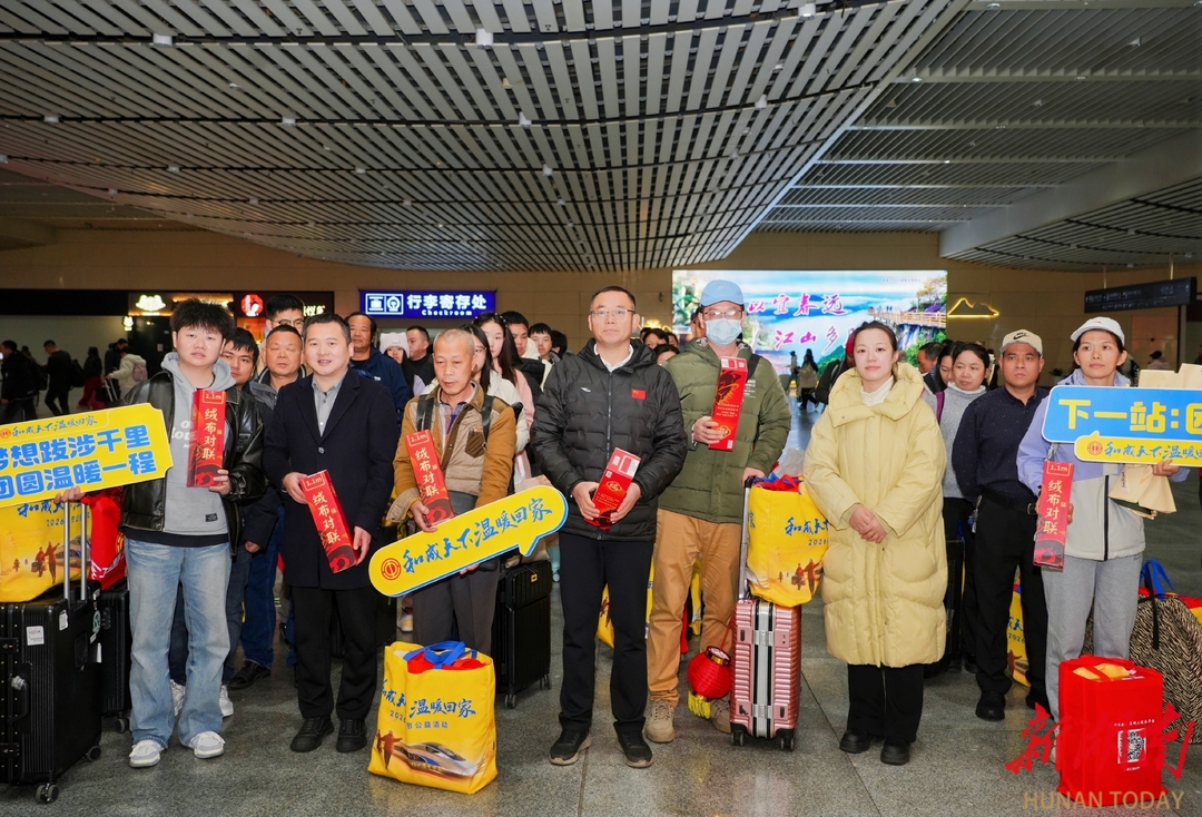 新湖南客户端2月10日讯(记者 陈丽丹)“欢迎回家!一路上辛苦了!”2月9日上午11时40分,G6002次列车准时抵达长沙南站。80名在广东务工的湖南籍职工刚提着行李走下车,就迎来了家乡工会“娘家人”的鲜花和问候。此前,这批务工人员从广州南站登上爱心专列,湖南省总工会、湖南省职工帮扶基金会一行早早在长沙南站等候。
