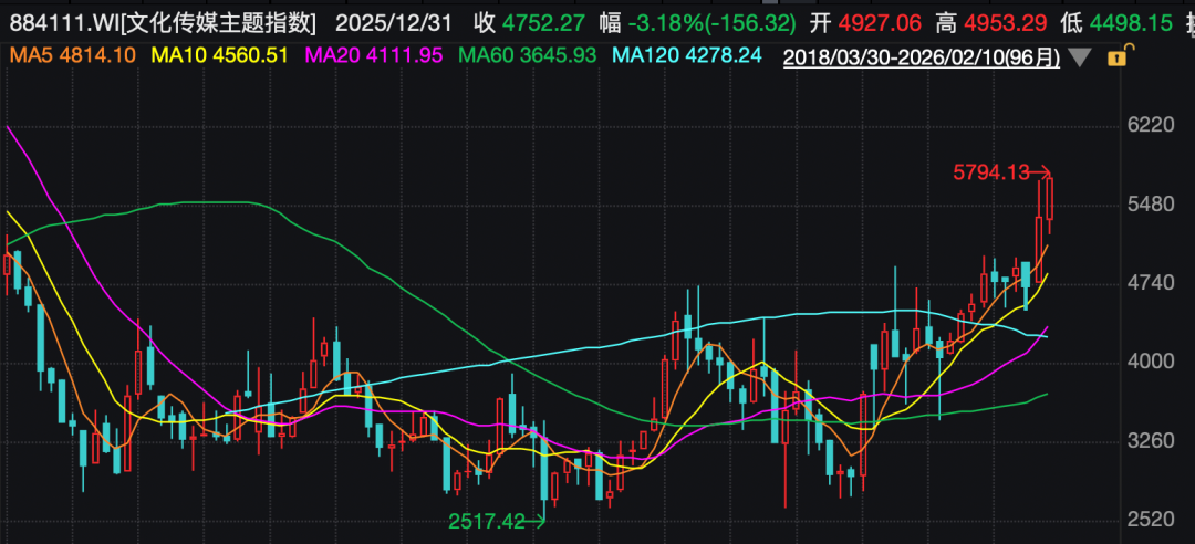 2月10日,在字节跳动AI视频生成模型Seedance2.0带动下,传媒板块涨势扩大,Wind数据显示,文化传媒主题指数(884111.WI)收涨4.51%,AI应用指数(8841683.WI)涨1.93%。