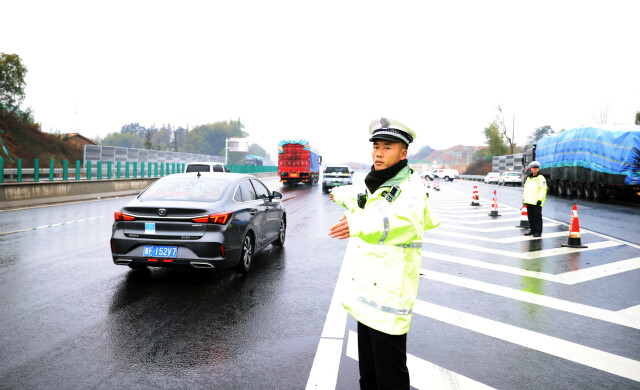“今年有个新情况,江西那边1月31号通了8车道,我们这边的车流量一下子涨了近一倍。”董晔一边招呼队友指挥车辆、摆锥桶,一边向记者介绍路况。