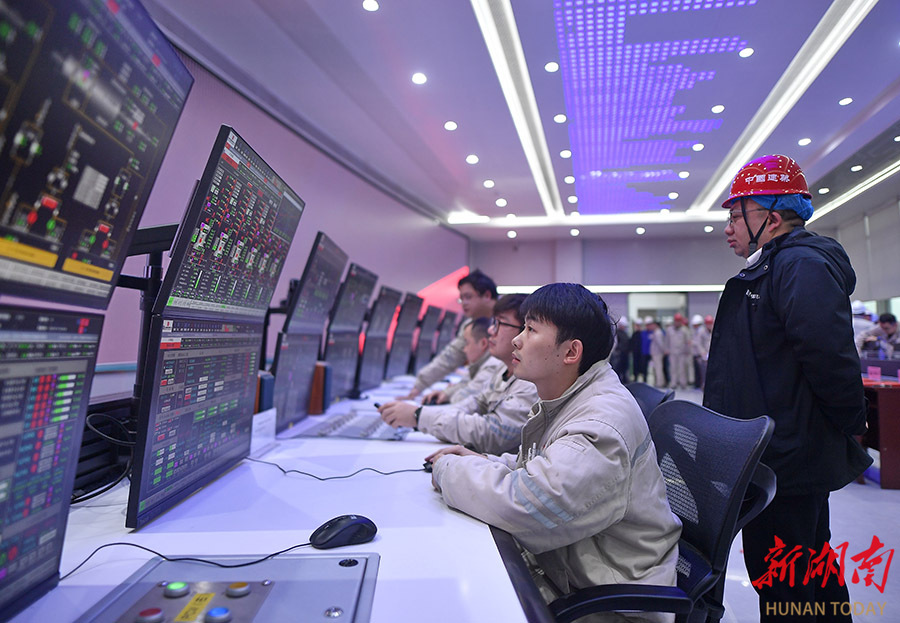 2月10日,电厂运行人员在集控室监控和操控发电机组设备。当天,由中国能建湖南火电承建的大唐华银株洲2×100万千瓦扩能升级改造项目2号机组,顺利完成168小时满负荷试运行。 湖南日报全媒体记者 童迪 通讯员 阳丽 摄影报道