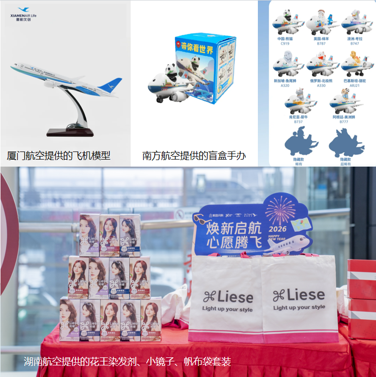 根据投稿的点赞量与受欢迎程度,投稿者还会获得丰富的奖品!南方航空盲盒玩具、厦门航空机模,湖南航空提供的花王染发膏套装……奖品多多,快来参与!