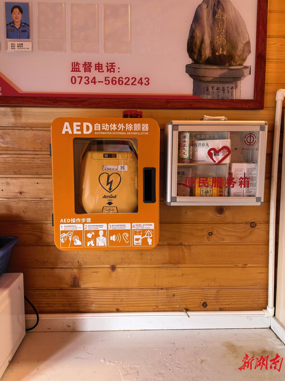 景区作为人流密集、环境复杂的游览区域,心搏骤停等突发急症的“黄金4分钟”抢救时间尤为关键。南岳区卫生健康局精准锚定急救需求,将AED设备布设作为景区急救保障的核心举措,按照“重点覆盖、全域布防”的原则,在祝融峰、南天门、半山亭、南岳大庙、游客服务中心等游客高度集中、应急风险较高的核心景点与服务枢纽,完成AED设备定点投放与安装,实现景区主要游览线路、关键服务节点无死角、全覆盖。