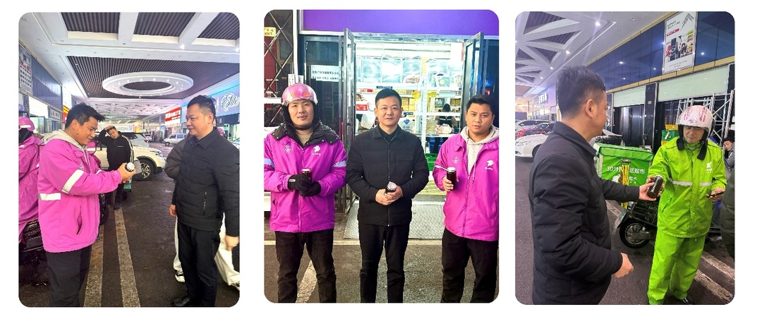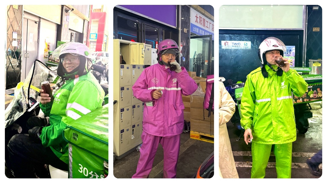 骑手们捧着温热姜茶,纷纷感慨这份关怀及时又暖心。不少骑手短暂休息后将未喝完的姜茶收好,准备配送途中饮用。志愿者们贴心叮嘱骑手注意安全,做好防寒保暖,遇困难可随时向“红色之家”求助。
